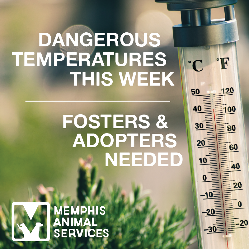 With temperatures this week reaching dangerous levels at 100 degrees with the heat index even higher, Memphis Animal Services is urging dog owners to limit outdoor time for their dogs. The heat brings with it an increase in intakes at MAS, and as kennel space remains at crisis level, we need fosters and adopters immediately. [Read more.]