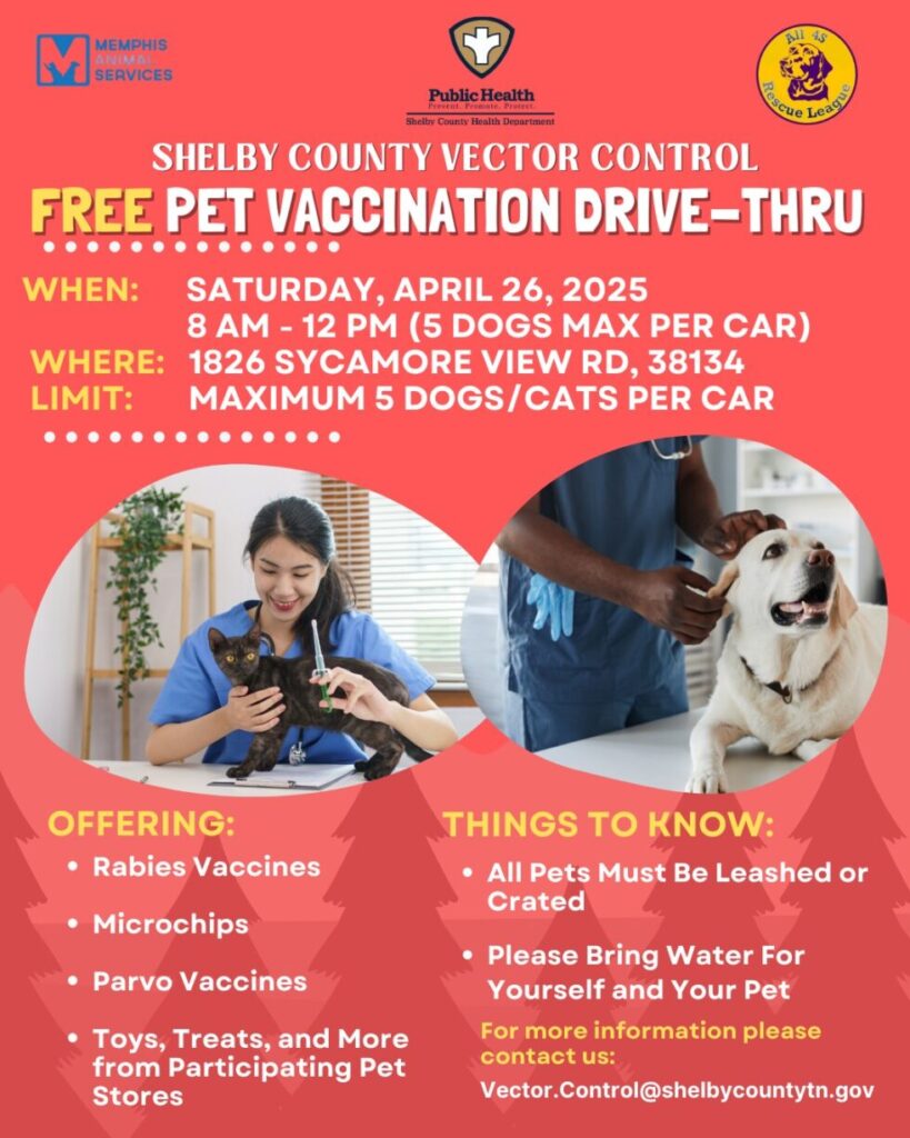 We’re teaming up with the Shelby County Health Department and All 4s Rescue League for a FREE pet vaccine drive!