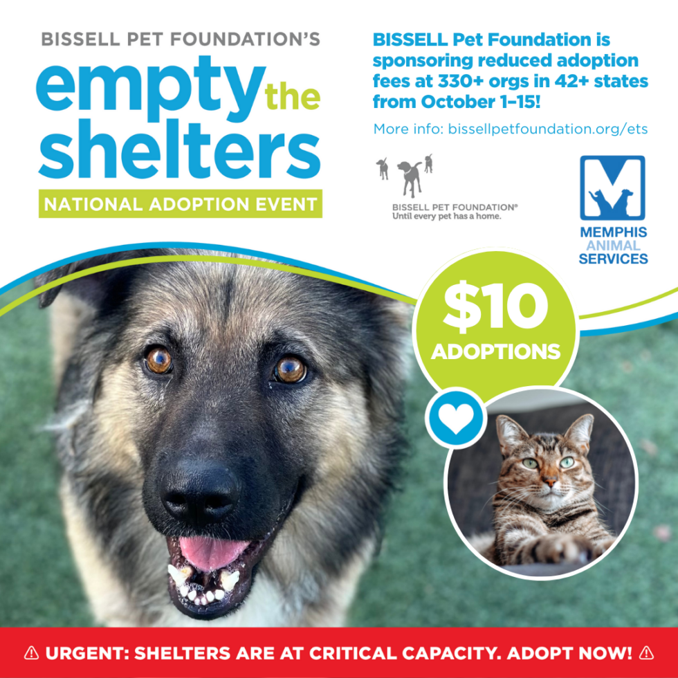 Memphis Animal Services Teams Up with BISSELL Pet Foundation to “Empty the Shelters” from October 1-15 during the nation’s largest funded adoption event
